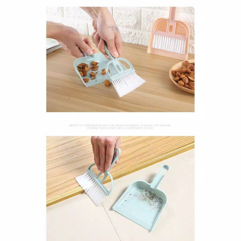dapat digunakan untuk membersihkan meja makan , meja , sofa , peralatan di dalam kendaraan . Berukuran kecil , sedikit tuang , tempat yang nyaman. Bulu terbuat dari bahan berkualitas tinggi dan tahan lamaSpesifikasiBahan : PlastikUkuranSapu 18 x 11 x 0.7 cmSerokan 19 x 13 x 3 cmWarna r