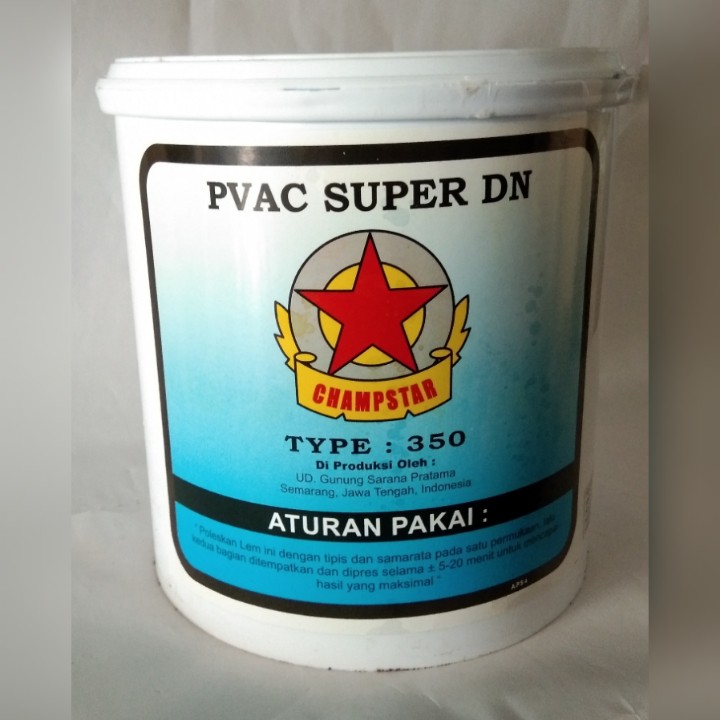 PVAC SUPER DNSpesial untuk lem kayu.ATURAN PAKAI:Oleskan lem ini dengan tipis dan sama rata pada satu permukaan, lalu kedua bagian ditempelkan dan dipres selama ± 20 menit atau I