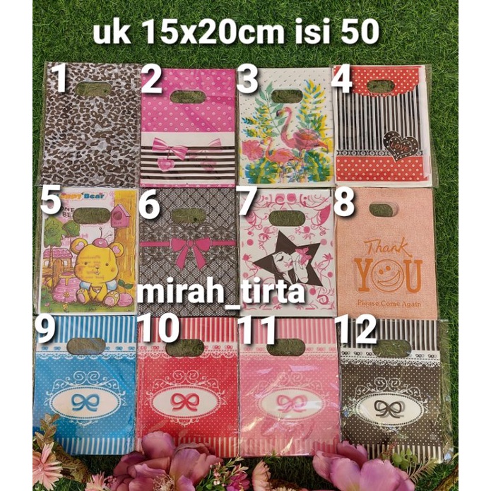 Kresek motif ukuran 15 x 20 isi kurang lebih 50 pcs . Bahan tipis importtanpa lipatan samping1KG MUAT 10 PACKUntuk macam2 pilihan ukuran lainnya bisa cek di etalase lainnya yah1. Ukuran 9cm x 15 cm2. Ukuran 13cm x 18 cm3. Ukuran 15 cm x 20 cm4. Ukuran 20cm x 25 cm5. Ukuran 20 cm x 30 cm6. Ukuran 25cm x 30 cm7. Ukuran 30 cm x 35 cm8. Ukuran 35cm x 45 cmHAPPY SHOPPING #kresekmotif #kantong plong #kresek pond1terima
