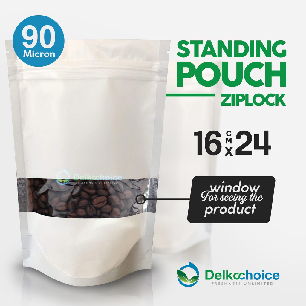 KELEBIHAN dari produk ini:1. GARANSI ANTI BOCOR, ANTI SOBEK2. Seal kuat. Snack lebih tahan lama, tidak mudah melempem (*hasil berbeda beda pada tiap produk)3. Tampilan produk terkesan lebih bersih, higienis, dan menarik serta premium quality dan safe.4. Lapisan Metalized sehingga menjaga kerenyahan makanan lebih lama.Cocok untuk makanan kopi, aneka snack, gorengan, kerupuk dllPlastik sudah ada klipTapi kalau mau diseal dengan hand sealer lebih baik lagiPastikan produk jualan anda atau penyimpanan di rumah menggunakan standing pouch window dari delkochoice!tersedia dalam dua warna black window dan white windowukuran : 12cm x 20cm14cm x 22cm16cm x 24cmGambaran atau estimasi untuk setiap ukuran dapat memuat :Ukuran 12x20cm (250gr)Isi kopi bubuk/ aneka bubuk kurang lebih 100 - 200 grIsi cemilan/ snack/ makanan ringan/ kacang/ keripik kurang lebih 100 grIsi gula pasir 250 grUkuran 14x22cm (500gr)Isi cemilan/ snack/ makanan ringan/ kacang/ keripik kurang lebih 200 - 250 grIsi aneka bubuk/ serbuk kurang lebih 250 grIsi gula pasir kurang lebih 500 grUkuran 16x24cm (1100gr)Isi cemilan/ snack/ makanan ringan/ kacang/ keripik kurang lebih 500 grIsi kopi bubuk/ aneka bubuk kurang lebih 500 grIsi gula pasir kurang lebih 1