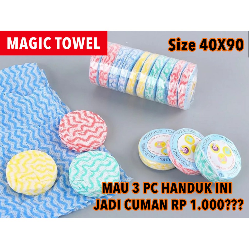 HARGA UNTUK 3pc Magic towel / Handuk Press *Mau 3pc handuk ini jadi harga Rp 1.000????dan berlaku KELIPATAN????Cek Produk2 kami yang bertanda Promo Combo Hemat*Kalo bigung chat kami langsungDetail:-uk Besar 40x90-Handuk super kecil dan mudah dibawa kemana2, hanya dicelup air dalam 3 detik berubah menjadi handuk uk besar dan Super Menyerap-Model handuk tipis agar cepat kering dan enteng-Tidak usah lagi bawa handuk berat dan menghabiskan space koper / tas anda saat traveling-Cocok untuk pemakaian sementara agar selalu higienis tanpa pusing Pengeluaran biaya-Cocok di masa pandemi -Cocok untuk sepedaan, olahraga, traveling, lap meja, lap tangan*Warna R