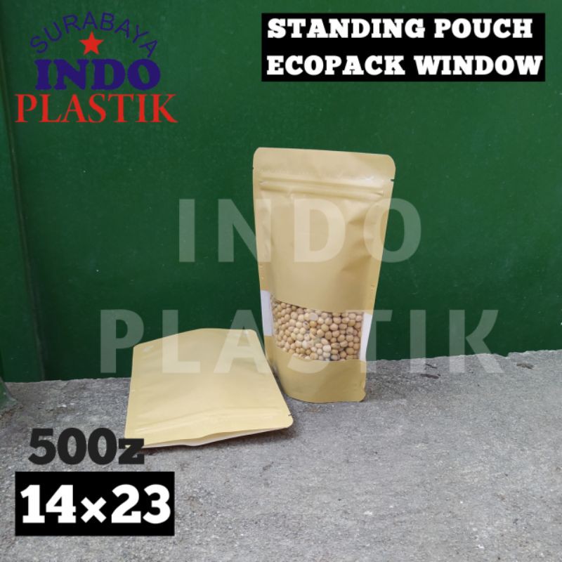 Promo Perlengkapan di Jakarta Timur Standing Pouch Paper Kraft Window 500gram 14x23cm Ecopack Kpack dari Indo Plastik Surabaya Kota Surabaya